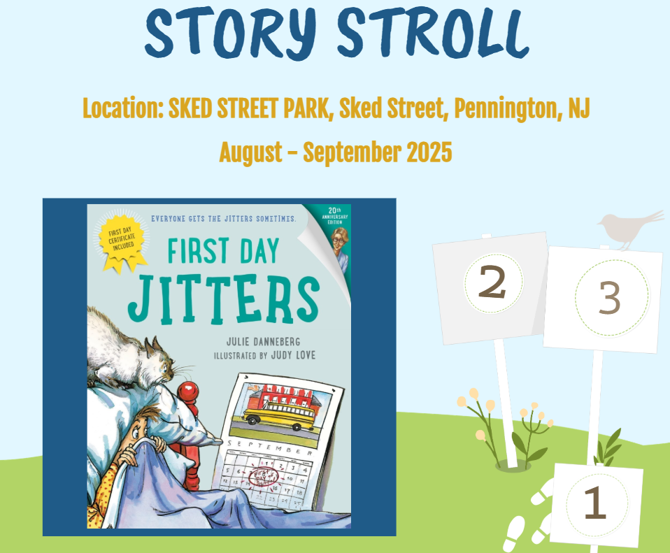 Story Stroll: First Day Jitters by Julie Danneberg August - September, 2025 Sked Street Park: Sked Street, Pennington, NJ 08534 Let’s go on a back-to-school Story Stroll! Exercise your body and your imagination as you follow the pages of First Day Jitters through Sked Street Park. No registration necessary. Sponsored by the Friends of Pennington […]